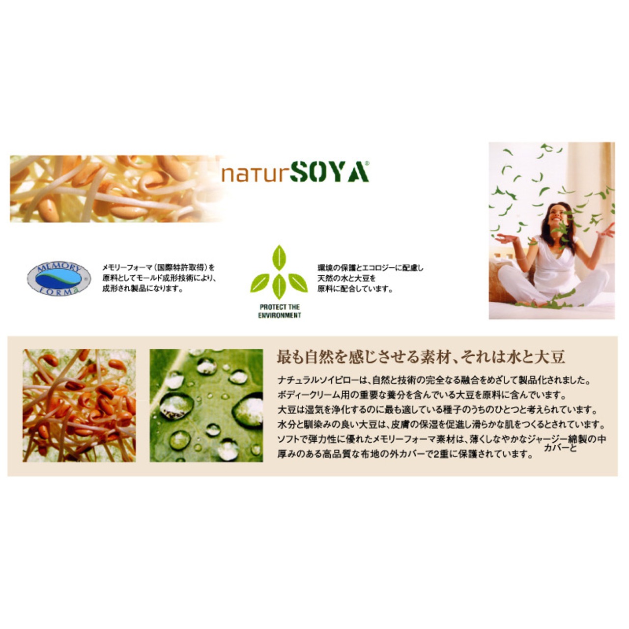ナチュールソヤピローは、オリジナル素材であるメモリーフォーマをベースに、ボディークリーム用の重要な養分を含んでいる天然大豆エッセンスを融合させる独自製法により製造された画期的なピローです。