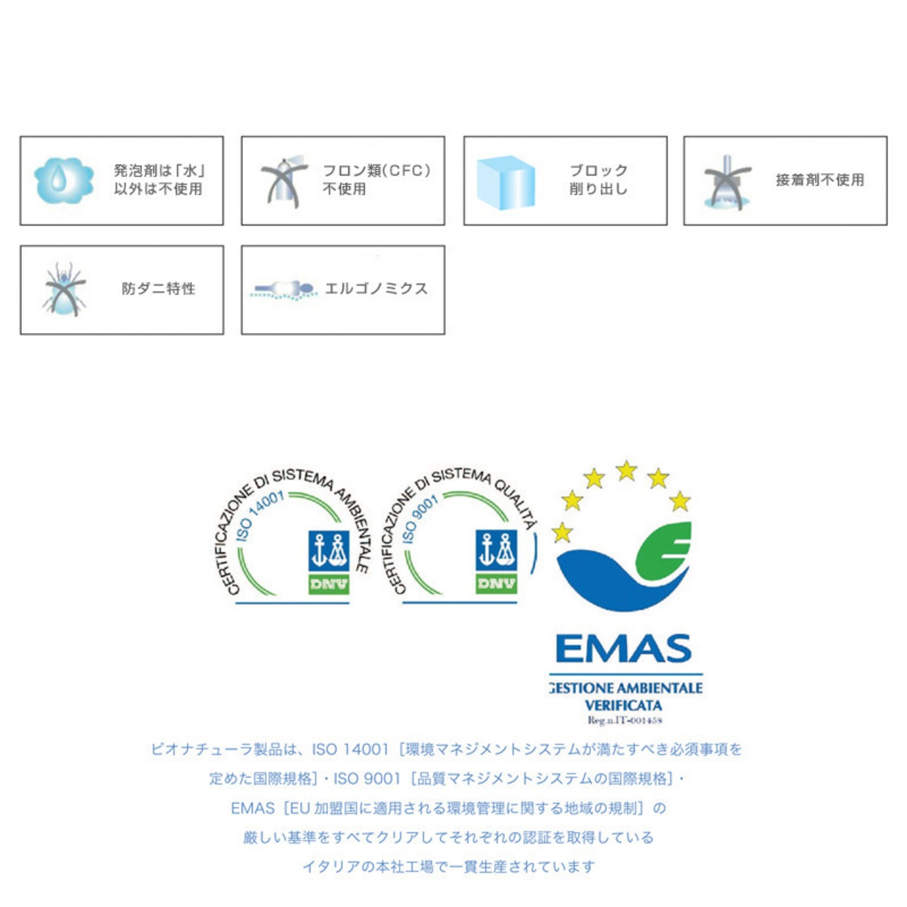 有害物質検査済み認証取得[OEKO TEX STANDARD 100]・空気透過性能認証取得[UNI EN ISO 4638]・清涼感維持性能検査済み[University of Padua]・欧州屈指の研究機関との共同研究[Padua and Lecce University]などによるさわやかな使い心地の健康的で安全・安心な製品です。
